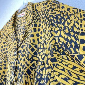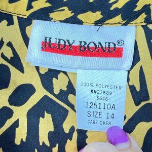 NWOT Vintage JUDY BOND Womens 14 Animal Print Smocked Waist Button V-Neck Blouse