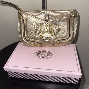 NWOT Vintage Juicy Couture Wristlet Pink Genuine Leather Wallet Clutch In Box