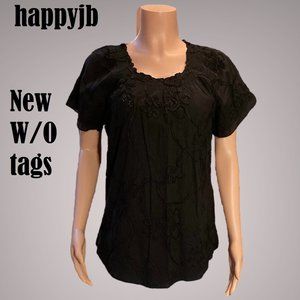 NWOT Vintage Laura Scott Top Blouse Short Sleeve Size L