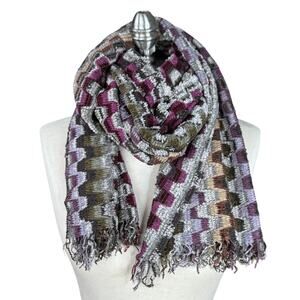 NWOT Vintage Missoni Scarf, Wool Blend, Purple Geometric Zigzag, Fringe, Italy