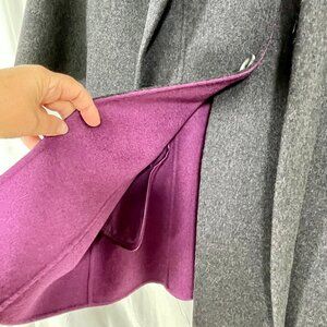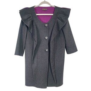 NWOT Vintage Ports 1961 Wool Cashmere Ruffle Coat Charcoal Gray Purple Womens 10