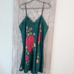 This nwot vintage set includes a floral patterned emerald green satin kimono gown and robe, designed by Solange Satin for plus size women (18/20). The robe features a tie closure and is belted for a comfortable fit. Perfect for all seasons, this elegant and stylish set is a timeless addition to any woman's wardrobe.