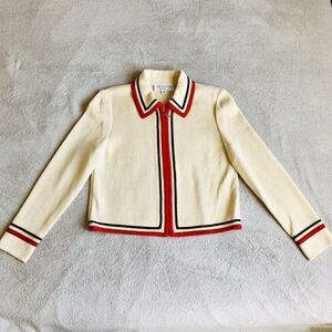 NWOT Vintage St. John Collection by Marie Gray Cream and Cranberry Knit Zip Up J