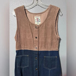 NWOT Vintage Studio 25 Corduroy/Denim Sleeveless Dress Sz M 100% Cotton Buttons