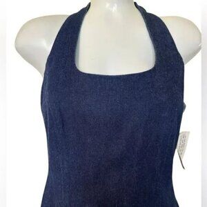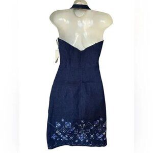 NWOT Vintage Laundry by Shelli Segal Denim Embroidered Halter Mini Dress