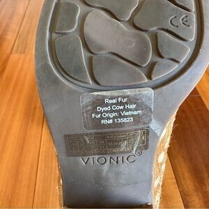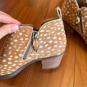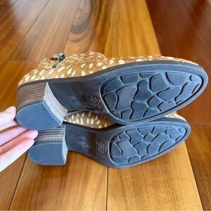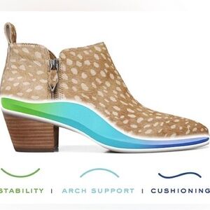 NWOT Vionic Leather or Haircalf Deer Print Real Fur Zip Ankle Boots Cecily Tan