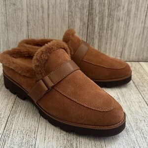 YOUR NEW FAVORITE WOMEN'S MULES: Lug sole, suede upper, faux-shearling lining, and an adjustable strap