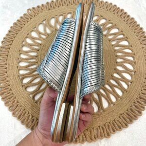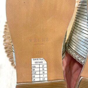 NWOT Vélez Inflexus Leather Flat Sandals for Women Silver Size EU 37/ US 7