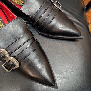 NWOT Von D Bathory Buckle Pointed Toe Winklepicker Shoes Size 9 Coffin Sole