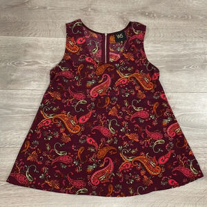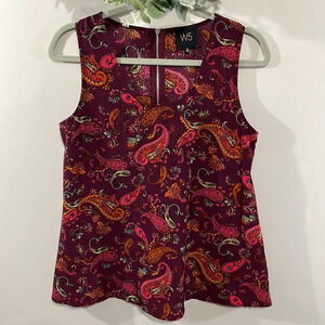 NWOT W5 Sleeveless Paisley Satin Tank Top in size S. Excellent new condition. Exposed back zipper detail, flattering pleat under zipper in back, super soft polyester fabric. Please see photos for approximate measurements and details. Item may show a difference in color based upon photography and perception. Photos are part of the description, as everyone’s level of condition may vary. From smoke free and pet free home. All packages are shipped the same or next business day.