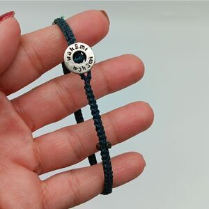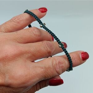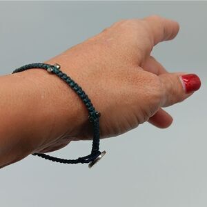 NWOT WAKAMI GLOBAL Green/Navy Blue Macreme Bracelet w/Interspersed Silver Cubes