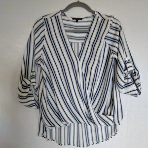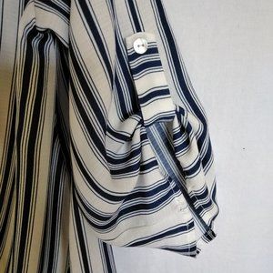 BEAUTIFUL STRIPED HI LO TOP BY WEST KEI, MEASUREMENTS CHEST BACK ARMPIT TO ARMPIT 19", SLEEVE SHOULDER TO CUFF 15", LENGTH FRONT 15", BACK 26", MEASUREMENTS APPROX, SMOKE/PET FREE HOME