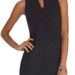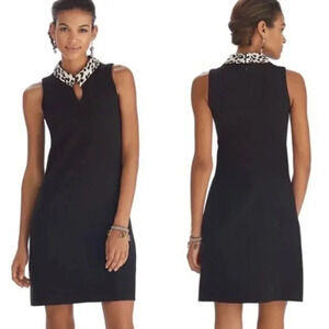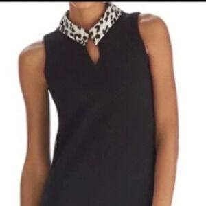 New never worn. Removable collar. Size 6 Black shift dress. Semi fitted shift shape. Fully lined. Keyhole at neckline, Stretch knit, Three looks in one— sleek black shift dress Removable faux leather collar that can switch to any collar you like or remove the collar all together.