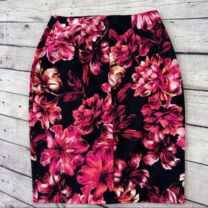 NWOT WHBM Black With red floral print pencil skirt size 4 back zipper lined