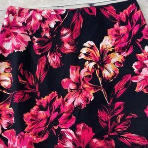 New without tag White House Black Market Black With red floral print pencil skirt size 4 back zipper, lined , cotton bland.