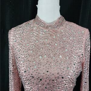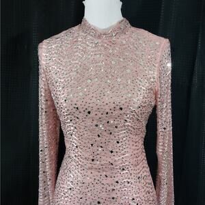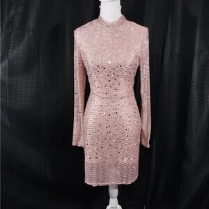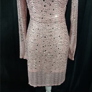From Windsor is this ultra stretch, body hugging dress in a peachy pink hue! Entirely embellished in varying shapes of "JEWELED" rhinestones, it features long sleeves and shimmery glam! Size L, stretch to fit! ***NEW Without Tags, and Guaranteed Superb by Lily @HauteClub!*