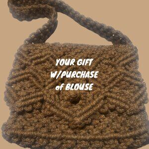 TRULY AUTHENTIC, FROM GREECE.... MY MOTHER PURCHASED THIS BLOUSE IN THE 1970'S WHEN SHE WAS IN GREECE WITH MY FATHER, ATTENDING A WEDDING THAT INCLUDED THE VERY POPULAR 1970'S AMERICAN/GREEK ACTOR, TELLY SAVALAS IN ATTENDANCE! THIS AIRY FLOWING POETIC WHITE BLOUSE FEATURING THE ACCENTS OF GOLDEN BEIGE HUES OF FLORA EMBROIDERY HAS A VERY SPECIAL "GIFT WITH PURCHASE" ...... FEATURED WITHIN THE VIDEO CLIP AND IN THE PHOTO GALLERY, THERE YOU WILL BE ABLE TO VIEW THE GIFT OF THE HAND MADE, NEVER USED, BOHEMIAN MACRAME PURSE THAT MY MOTHER HAD PURCHASED TO ACCESSORIZE THIS BLOUSE. SINCE I HAD THE KNOWLEDGE OF THIS, I WAS INSPIRED WITH THIS "GIFT WITH PURCHASE" OPPORTUNITY FOR THE NEXT OWNER OF THIS ENSEMBLE! I DO HOPE FOR THIS ENSEMBLE TO WORN AT SOME TYPE OF "LIVING OUT LOUD" FESTIVAL, CONCERT, IN TRAVELS LOCALLY OR GLOBALLY!