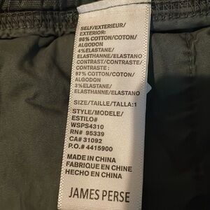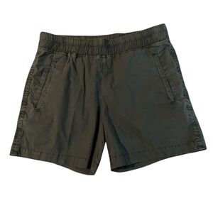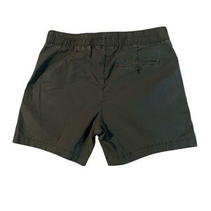 Elevate your summer wardrobe with these stylish James Perse stretch cotton poplin shorts in army green. The high-rise drawstring waist and 5-inch inseam provide a comfortable and flattering fit, while the utility style adds functionality to your look. The cotton material and stretch features make these shorts perfect for any adventure, whether it's a day out with friends or a hike in the wilderness.