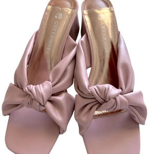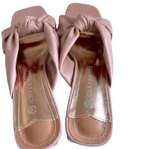 NWOT WOMENS SEXY CHUNKY HEELED SANDAL SUMMER OPEN TOE SHOE DUSTY PINK SIZE 7.5