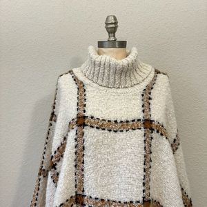 NWOT WORLD MARKET Plaid Poncho Shawl in Cream Brown