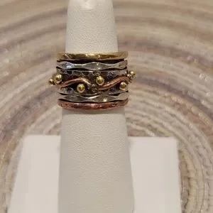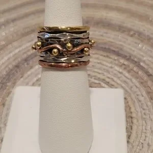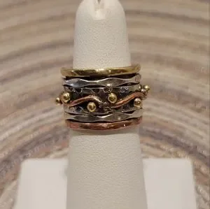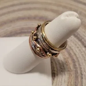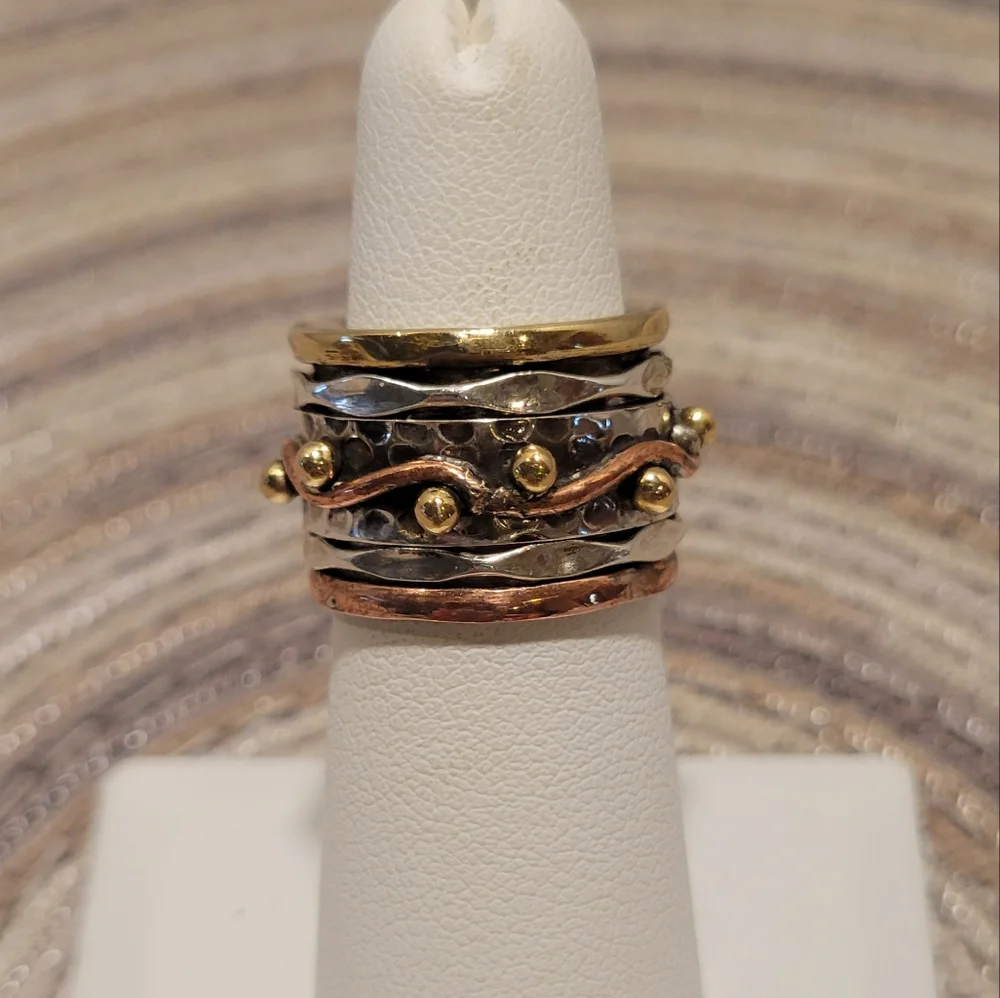 925 STERLING SILVER & COPPER STUNNING WORRY or MEDITATION Ring. This Style of ring has one or more rings that spin freely within a wider inner ring. The Spinning motion of the ring is designed to calm ANXIETY & bring a PEACEFUL state of mind & GOOD KARMA.