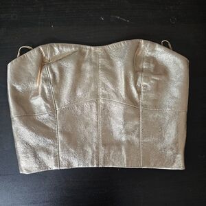 NWOT Walter Baker 100% Lambs Leather Shimmering Gold Strapless Crop Top Size XS