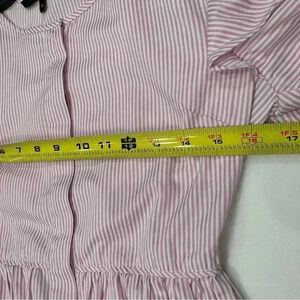 This lovely pink & white striped top by Walter Baker is a button down shirt with hidden buttons and ruffled sleeves. Size XS. See photos for measurements. MSRP $158