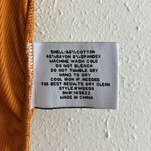 •Shell: 46% Cotton, 46% Rayon 8% Spandex