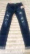 Stylish dark blue distressed jeans perfect for casual outings. Comfortable fit with a trendy look.