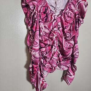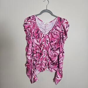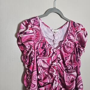 π NWOT WAYf Topanga Ruched Puff Long Sleeve Satin Top β Fuchsia Swirl | Sz Small β¨