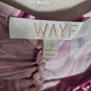 NWOT Wayf Topanga Ruched Puff Long Sleeve Satin Top in Fuscia Swirl Sz Small
