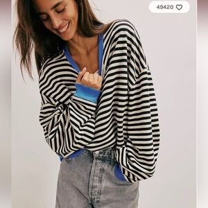 NWOT We The Free Classic Striped Oversized Crewneck Sweatshirt/ Black Combo