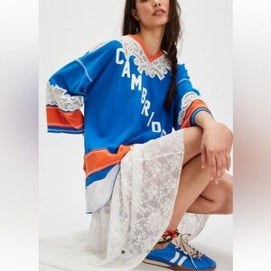 Two contrasting vibes collide with this oversized tee from We The Free, featured in jersey-inspired design with lace paneling for the perfect unexpected femme touch.
