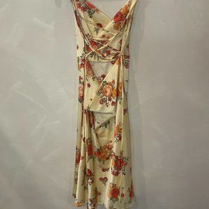 NWOT WeWoreWhat Tie Back Cowl NeckSatin Slip Dress in Yellow Floral in Small