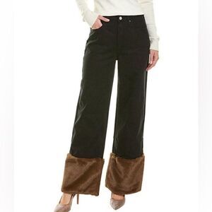 NWOT WeWoreWhat Women's black Straight leg Jeans with faux fur cuffs size 24