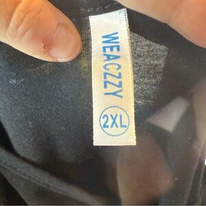 New without tags Weaczzy women's 2 XL black short sleeve tee shirt dress with pockets. Rayon spandex blend, machine wash cold line dry recommended. Flowy, cool, comfortable.