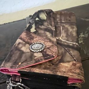 NWOT Webers Camoleather Mossy Oak/pink womens wallet.