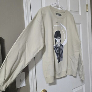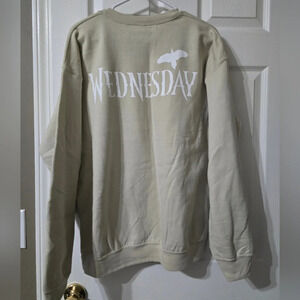 NWOT Wednesday/Netflix Oversized Beige Crewneck Sweatshirt, Unisex, Size Large.