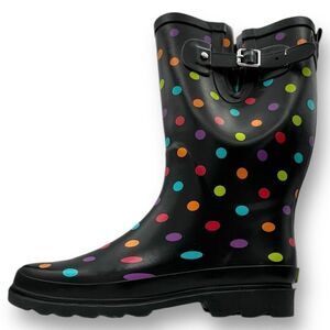 NWOT Western Chief Womens Dot City Tall Rain Boots Black Size 10