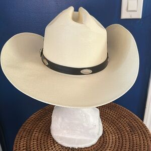 NWOT Western Express Straw Cattleman Style Black Band Silver Conchos Cowboy Hat