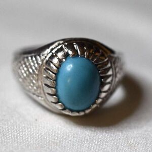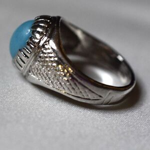 NWOT Western Soft Blue Oval Stone Etched Silver Tone Metal Alloy Band Size 13.5 Ring