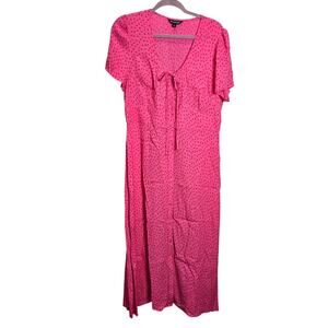 NWOT Whistles Pink Heidi Spot Print Midi Dress Short Sleeve Button Front 12