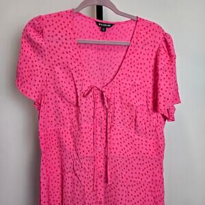 New without tags! Whistles pink heidi spot print midi dress. Short sleeves. button front. Ties at the neckline for a cute little bow detail. Size 12.