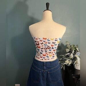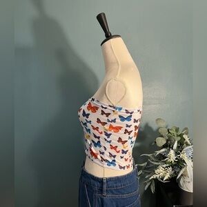 đ șNWOT White Bandeau with Colorful Butterfly Pattern - Size Medium