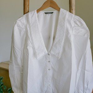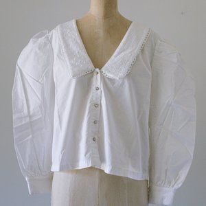 Tags lace scalloped cuffed long sleeve peasant prairie prarie german sailor collar puffed sleeves cottage cottagecore pioneer light academia folk victorian romantic feminine austrian bishop balloon vintage style