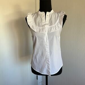 NWOT - White Button Down Bib Front Cap Sleeve Tank Blouse - 2