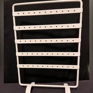 Charming brand new without the tag white earring display stand. Ideal for showcasing jewelry/earrings or a space saving solution to keeping track of all your earrings as well as displaying them. Keeps them organized too. I had bought this to use & just never have used it. I paid $23 for it but willing to take just about anything to get it out of my space. Lol.