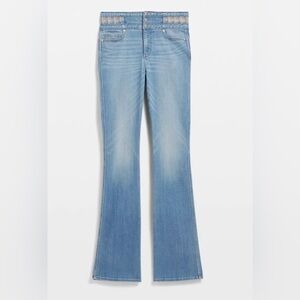 NWOT Chic blue boot cut jeans with tan tweed at waistline accent. Skinny flare extra high rise. Perfect blend of comfort and style. Matching jacket is available in my closet as well.