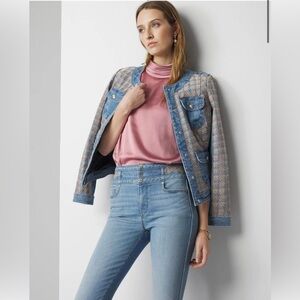 NWOT White House Black Market Blue Jeans with Tweed Waistband Details