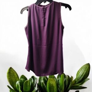 NWOT Gorgeous White House Black Market Plum Shell, trimmed in silver. Fully lined, size 0. Button closure at the back of the neck. No call-outs, perfect condition.
